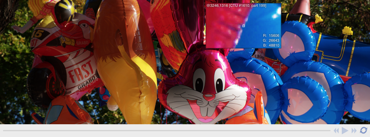 YUV, XYZ, YIQ, RGB, HSV, Gray 4:0:0, 4:2:0, 4:2:2, 4:4:4 planar, interleaved UYVY, YUY2, YUV10, NV12 v210, v410, p010, r210, yuv10, P010, NV21 etc. Floating point raw data image sequences Magnifier, pixel-exact view Diff View OpenEXR DPX player Radiance HDR TGA,TIFF, JPG, PNG, BMP y4m (YUV4MPEG) AVI (raw, mjpeg) MOV / ProRes / MP4 (H.264) Fast & Smart Endian Swap CLI pipe support Arbitrary bit depths One-File-Per-Frame sequences Timecode File format cache and format detection Plugin API Large File Support Playlists HDR Evaluation Mode Macroblocks overlay (AVC/HEVC/etc.) Brightness, Contrast, Gamma, Exposure HEVC CTU and PU indices Drag and Drop Drawing Annotations Side-by-Side, YesNo, Normal diff Advanced Deinterlacing Channel stepping Synchronized Playing PSNR, SSIM, MSE VMAF Histogram Offline conversion Deinterlacing Rotation Mirroring Reversal Extraction Fully scriptable CLI macOS, Linux and Windows Freeware on Linux